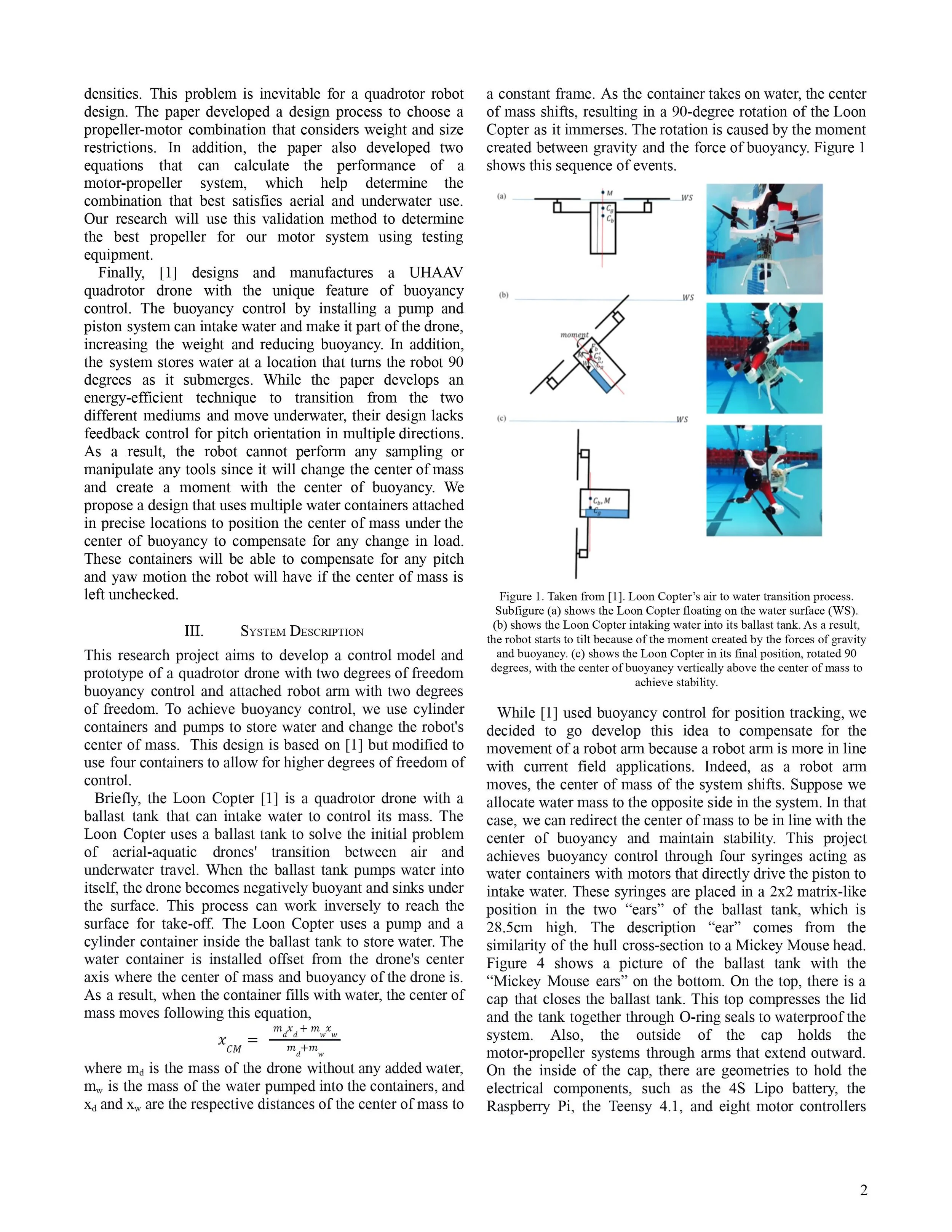 (UNDERGRADUATE RESEARCH OPPORTUNITIES PROGRAM)Development of an Unmanned Aerial-Aquatic Drone with Buoyancy Control